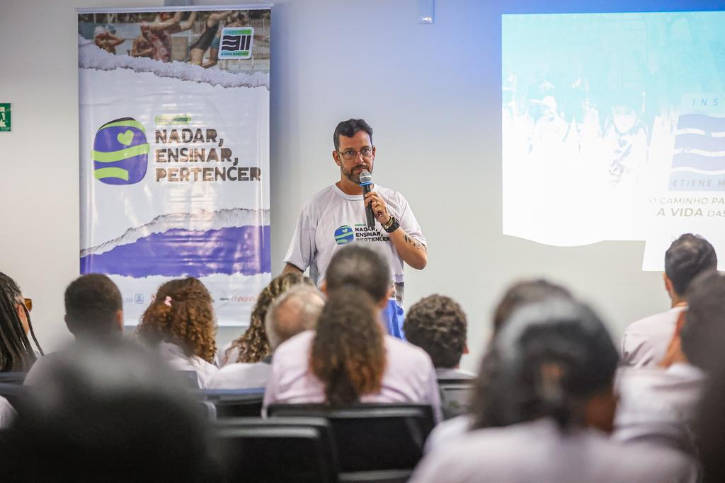 Julho, 2025 –A primeira edição do “Nadar, Ensinar, Pertencer”, organizado pelo Instituto Etiene Medeiros (IEM), foi realizada no sábado (12), em Recife (PE), com palestras, trocas e vivências em busca de um futuro com mais oportunidades para crianças e adolescentes em vulnerabilidade. Foram quatro palestras sobre prática esportiva, educação e pertencimento, voltadas para a formação técnica de quem esteve no evento. Uma manhã de imersão e conhecimento, com a participação de estudantes, educadores e professores de esporte.