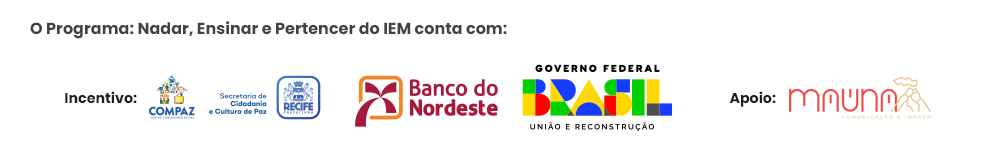 “Nadar, Ensinar, Pertencer” teve promoção do IEM, com incentivo do Banco do Nordeste, parceria com a Prefeitura do Recife/Secretaria de Cidadania e Cultura de Paz e COMPAZ, e apoio agência Maúna.